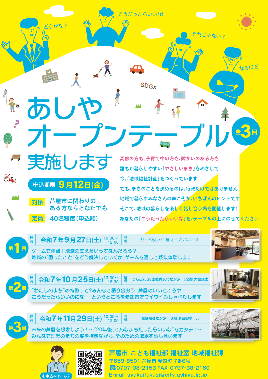 こども福祉部企画として、3日間にわたって開催された「あしやオープンテーブル」に、親子で参加しました。第1回目の会場は、リードあしやのオープンスペースです。