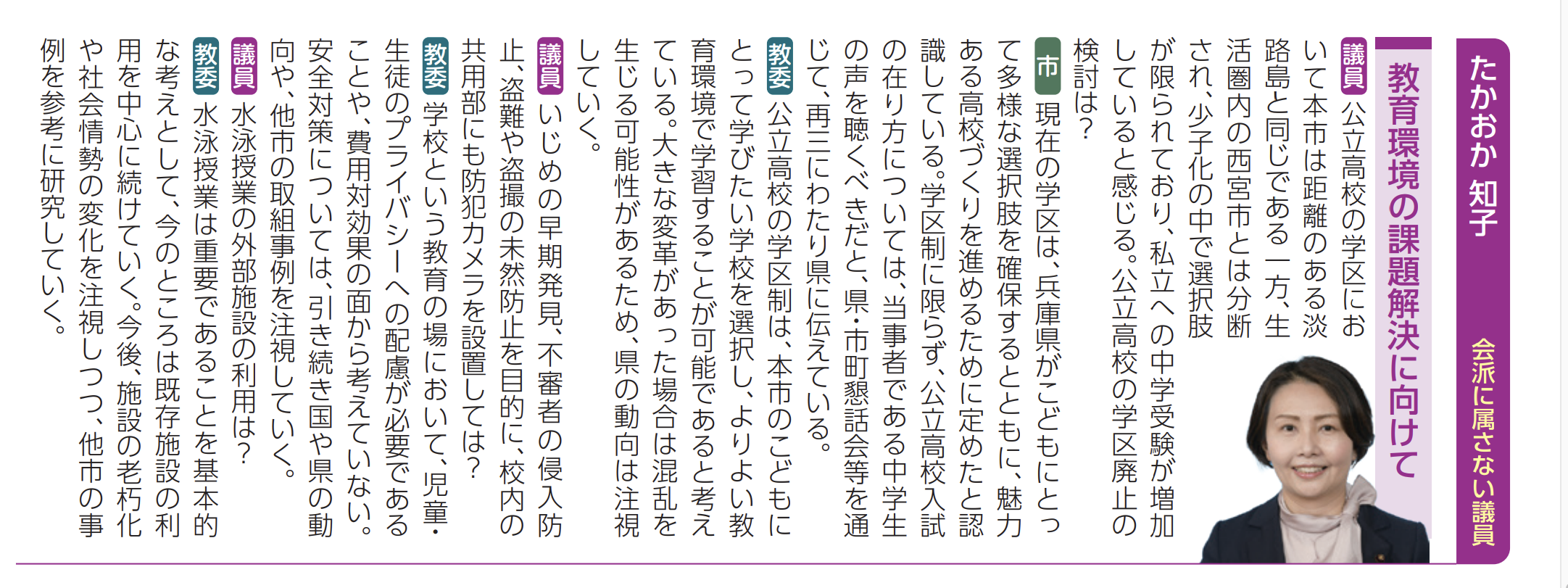 たかおか知子の一般質問